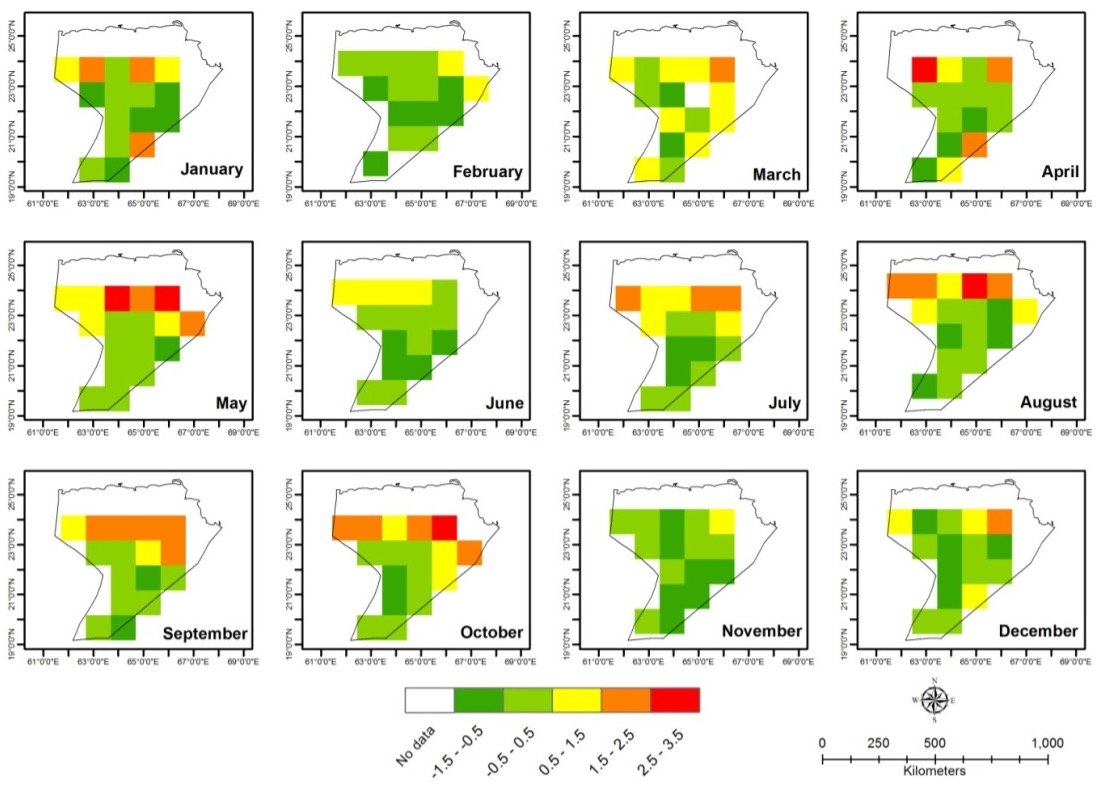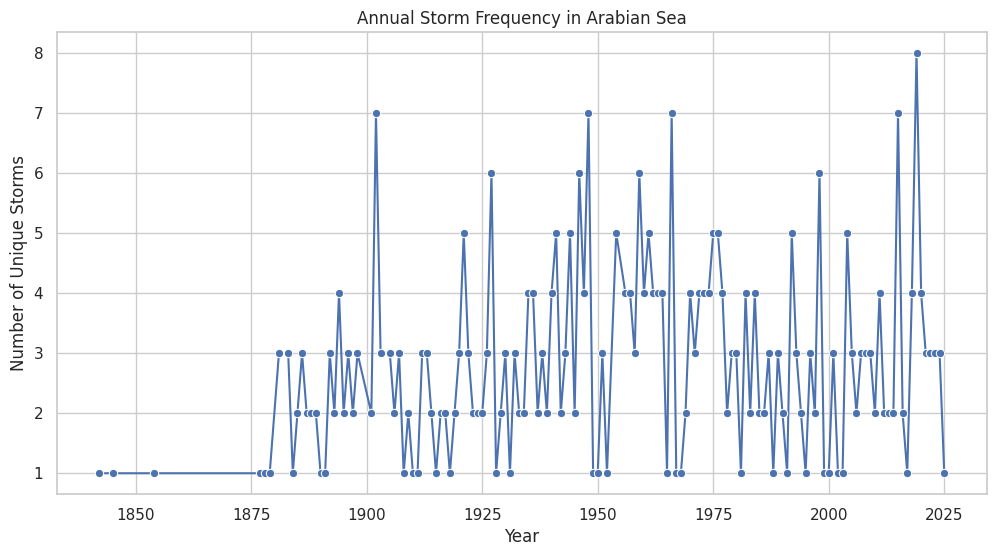 Storm frequency and intensity analysis involves studying historical and real-time data on cyclones, tropical storms, and extreme weather events to understand patterns, trends, and potential impacts on coastal regions. Along Pakistan’s coastline, particularly the Indus Delta and Makran Coast, such analyses are crucial for assessing the risk to human settlements, infrastructure, agriculture, and coastal ecosystems. By integrating satellite observations, meteorological records, and climate models, SUPARCO evaluates changes in storm occurrence, peak wind speeds, rainfall intensity, and sea level surges. This information supports early warning systems, disaster preparedness, and coastal management strategies, helping mitigate risks and enhance resilience of vulnerable communities and ecosystems against increasingly frequent and severe storms.