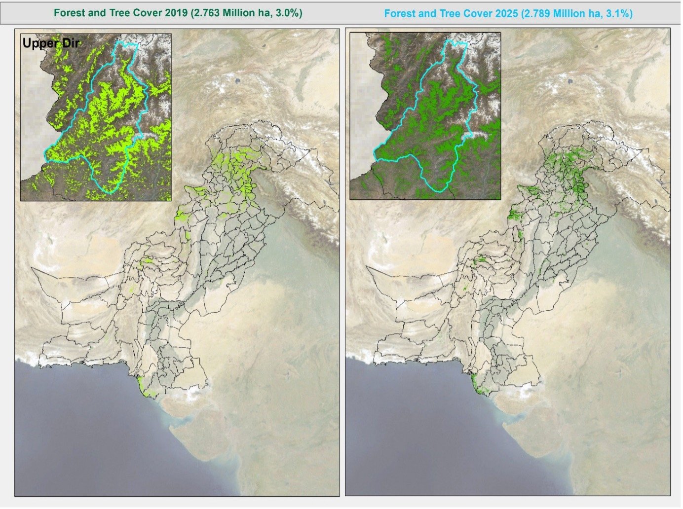 • Quantifying Forest Cover Change from National to District scales across Pakistan