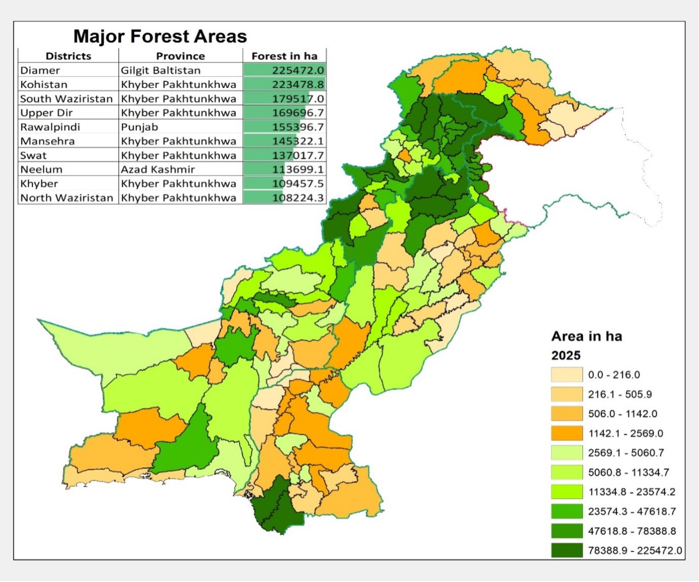 Pakistan currently has less than five percent of its land area under forests, and demands for protection of forests resources is crucial to combat climate change and mitigate the harmful effects of greenhouse gas (GHG) emissions. The demand for up-to-date, scientific and reliable forest spatial data has grown over recent decades.
